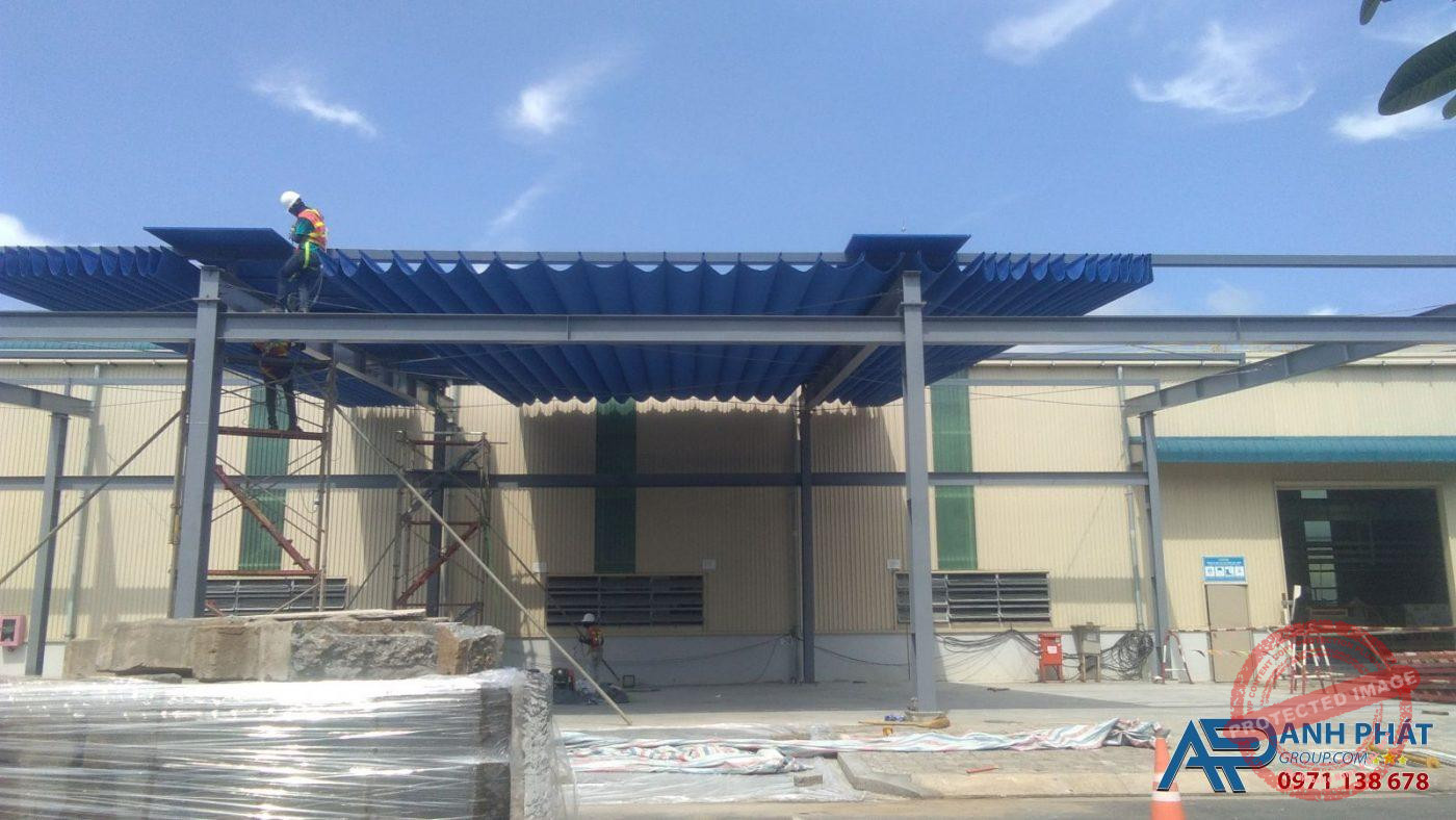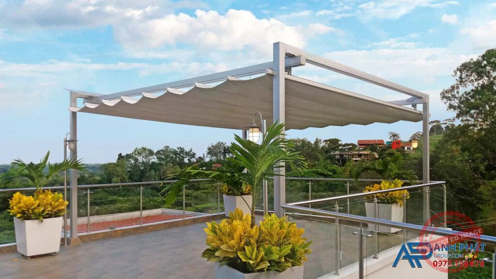 Gắn các hệ thông kéo và xếp, gắn tay quay hoặc motor để có thể dễ dàng điều chỉnh độ che chắn của mái kéo.